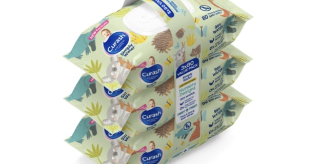 1 Apr 2026Tweak has created the pack design for Curash’s limited-edition nursery wipe range, featuring Australian animal illustrations, and on shelf in a 3x80 pack secured by a sticker that doubles as a carry handle.