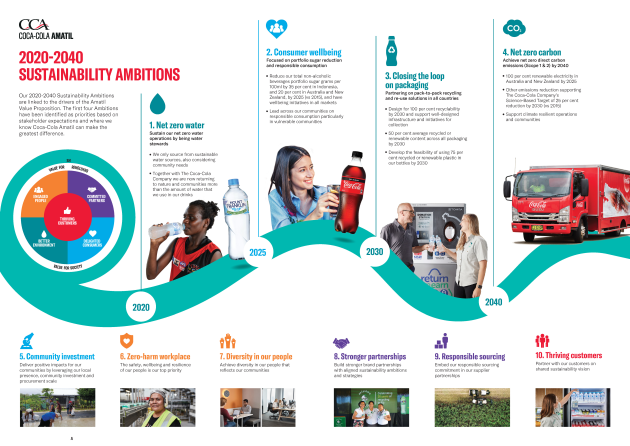 Coca-Cola Amatil has announced a range of 10 sustainability objectives in its 2020-2040 Sustainability Ambitions, designed to make a distinct and positive contribution between now and 2040 to the communities and markets it operates in.
