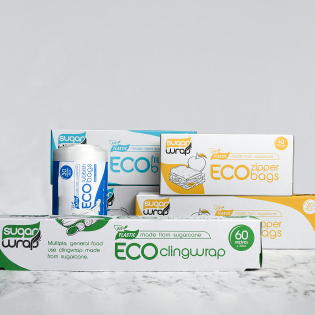 SugarWrap also has a recyclable clingwrap option made from 60 per cent natural sugarcane, as well as recyclable zipper bags, freezer bags and rubbish bags.