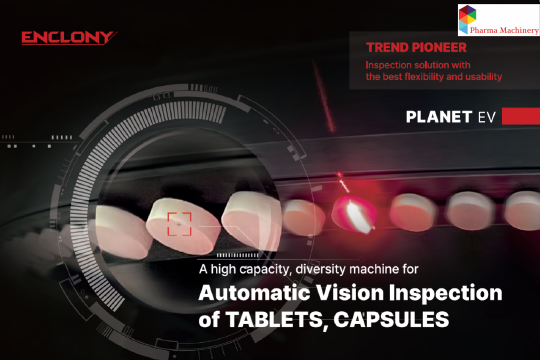 Pharma Machinery supplied Enclony PLANET EV-TC, a dual-purpose inspection system featuring 10 2D and two 3D cameras for tablets, and 14 2D plus one infrared camera for capsules.