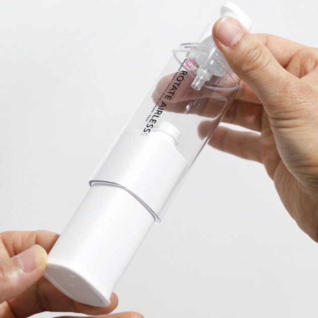 EZ Rotate Airless introduces a refill structure in which the inner bottle is pushed downward through rotation of the collar (shoulder) component, enabling compatibility with a wide variety of airless pump bottle designs. The system is crafted from olefin-based materials such as PP and PE and incorporates a mono-material pump.
