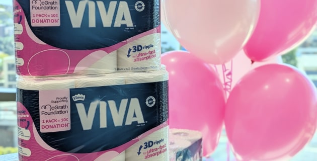 Limited-edition pink packaging is appearing on Viva paper towel 3-packs in major supermarkets across Australia as part of a summer campaign supporting the McGrath Foundation. Read more