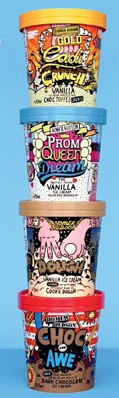 Why? “We wanted to celebrate excessive popular culture, the ice cream dream. We wanted Homer Hudson to be a celebration of fun, all out, OTT and anti-sanitised. There’s so much ‘wholesomeness’ out there in the category. This is break-up ice cream, promotion ice cream, wow what a day ice cream, me and my bestie ice cream…everything about the new Homer Hudson, from flavours to (imminent) interactive packaging, stemmed from that.