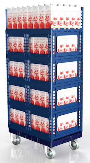 “It also provides excellent return logistics with a 5:1 nested ratio. The L-Crate is a true roll-in, one touch merchandising option, significantly reducing shelf replenishment costs.”