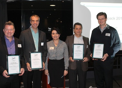 (l to r) Stephen Flaherty, Confoil; Ian Hayes, Devondale Murray Goulburn; Dr Roya Khalil, Bega Cheese and AIP VIC vice chair; Claude D'Amico, Innovia Films and Mark Dingley, Matthews and APPMA chairman.